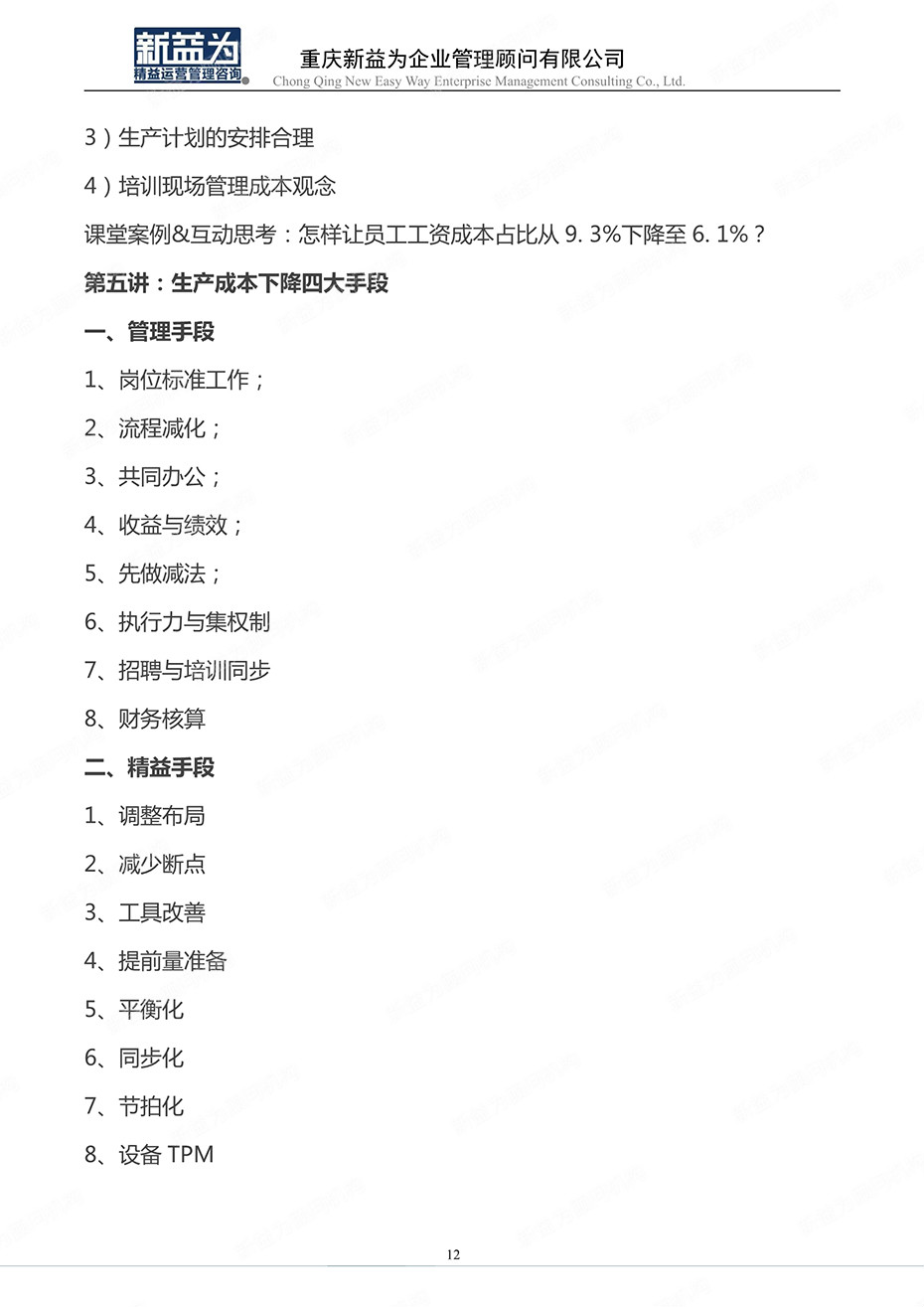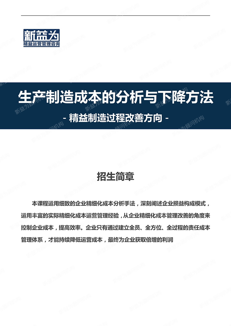 重慶2020.11 生產(chǎn)制造成本的分析與下降方法訓(xùn)練營(yíng)