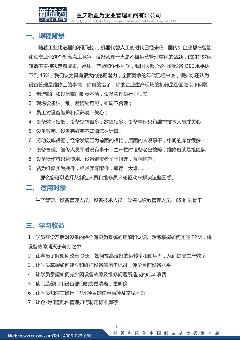重慶2021.03 全面設(shè)備維護(hù)TPM實(shí)戰(zhàn)訓(xùn)練營